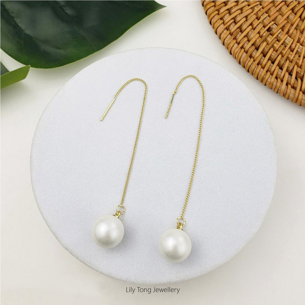 12mm Shell Pearl Drop Threader Earrings #T101 White
