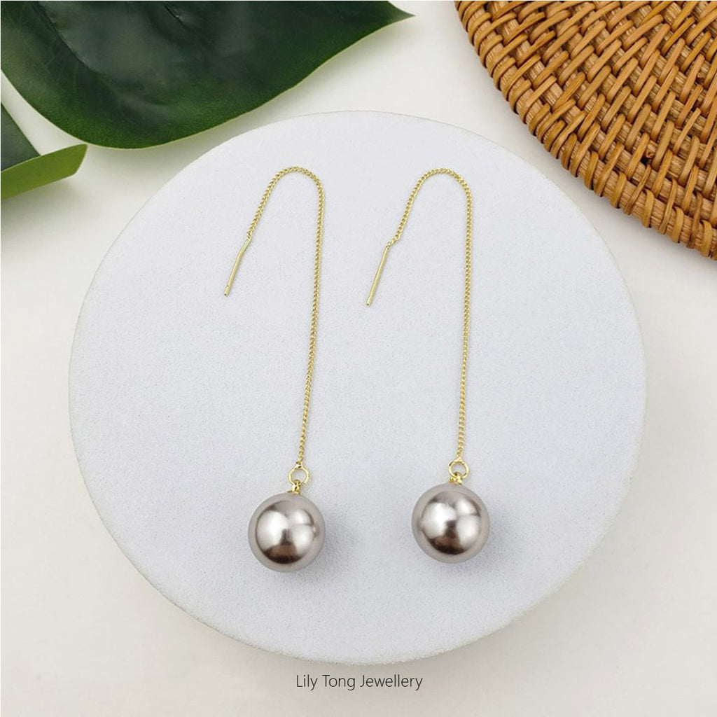 12mm Shell Pearl Drop Threader Earrings #T103 Silver Grey