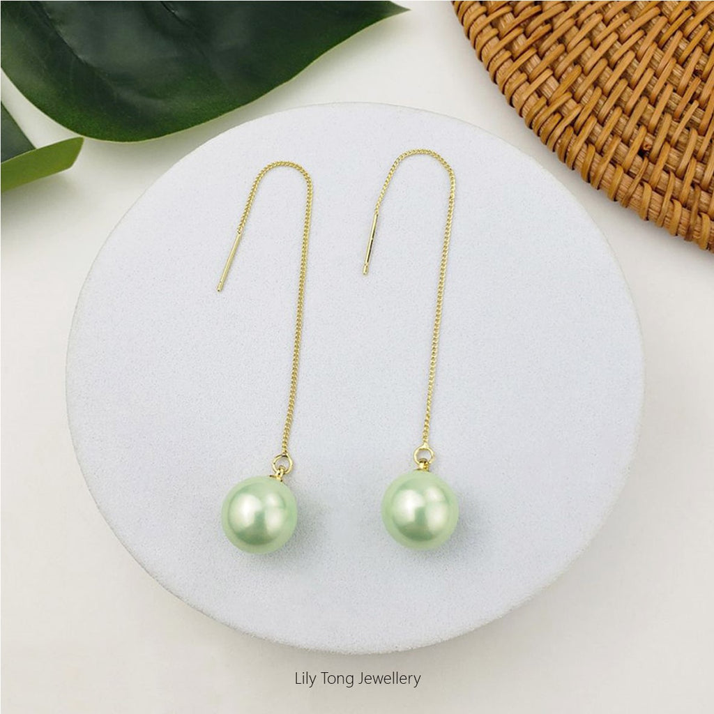 12mm Shell Pearl Drop Threader Earrings #T118 Mint Green