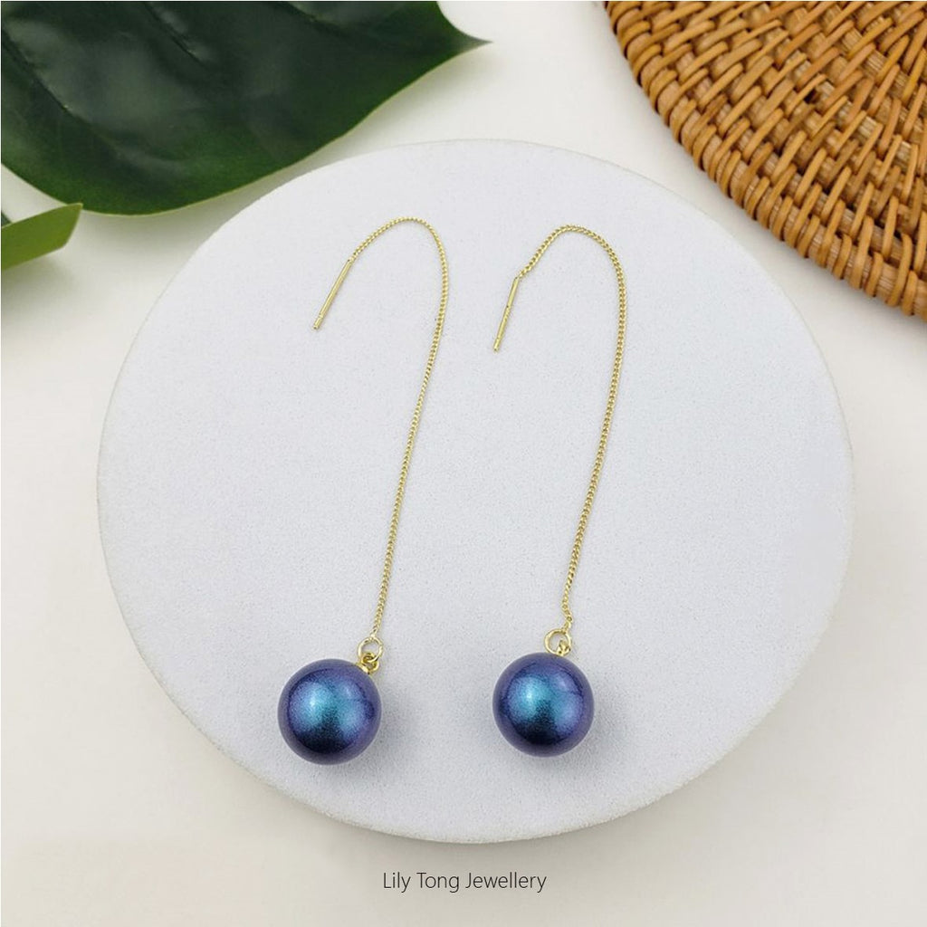 12mm Shell Pearl Drop Threader Earrings #T120 Peacock Blue
