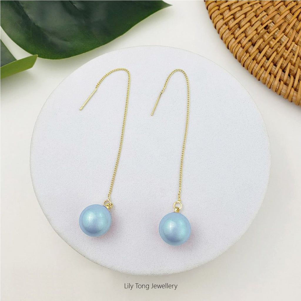 12mm Shell Pearl Drop Threader Earrings #T121 Baby Blue