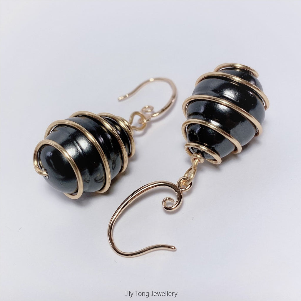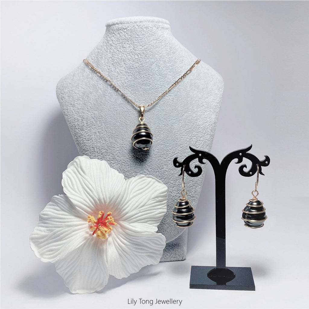 Gold-Filled Spiral Caged Shell Pearl Jewellry Set (Black)