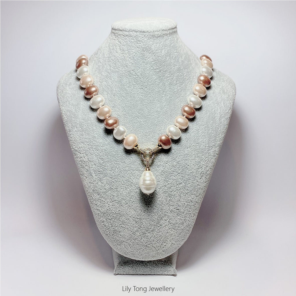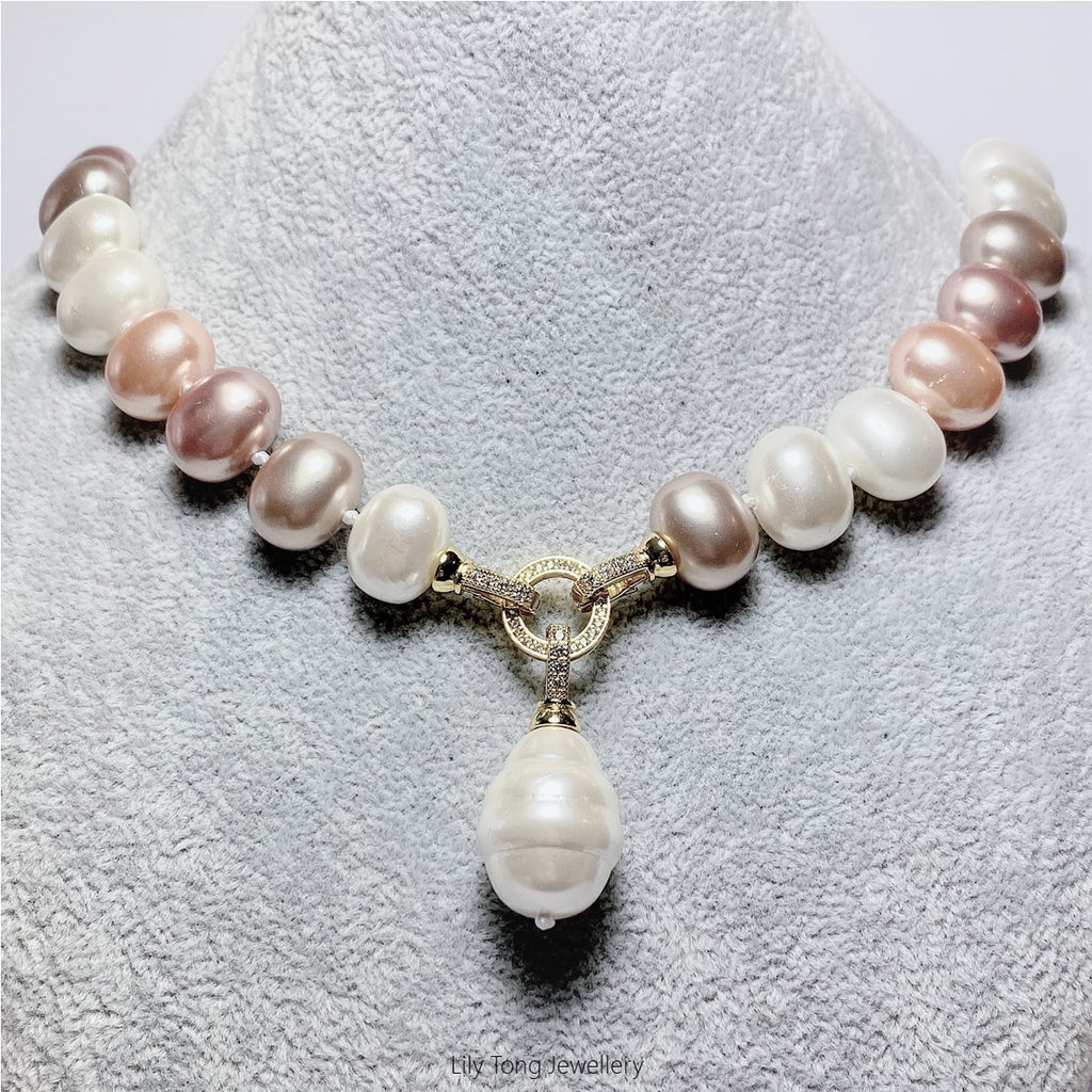 Multi-Coloured Oval Shell Pearl 1-Bead Pendant Necklace #0612