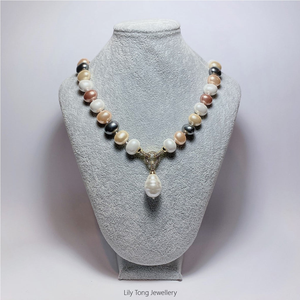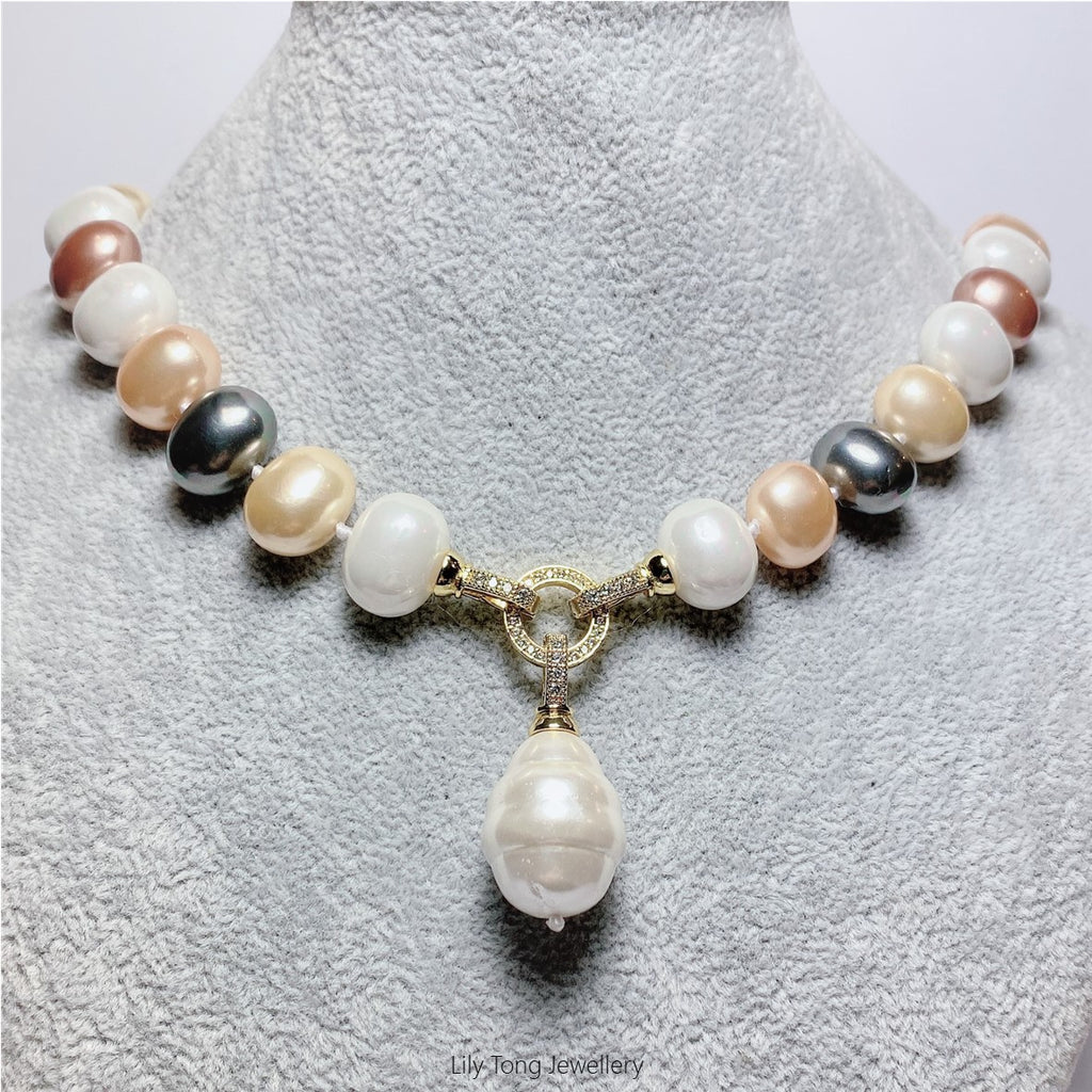Multi-Coloured Oval Shell Pearl 1-Bead Pendant Necklace #0608