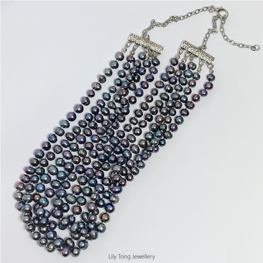 Multi-Strand Freshwater Pearl Necklace - 5-Strand