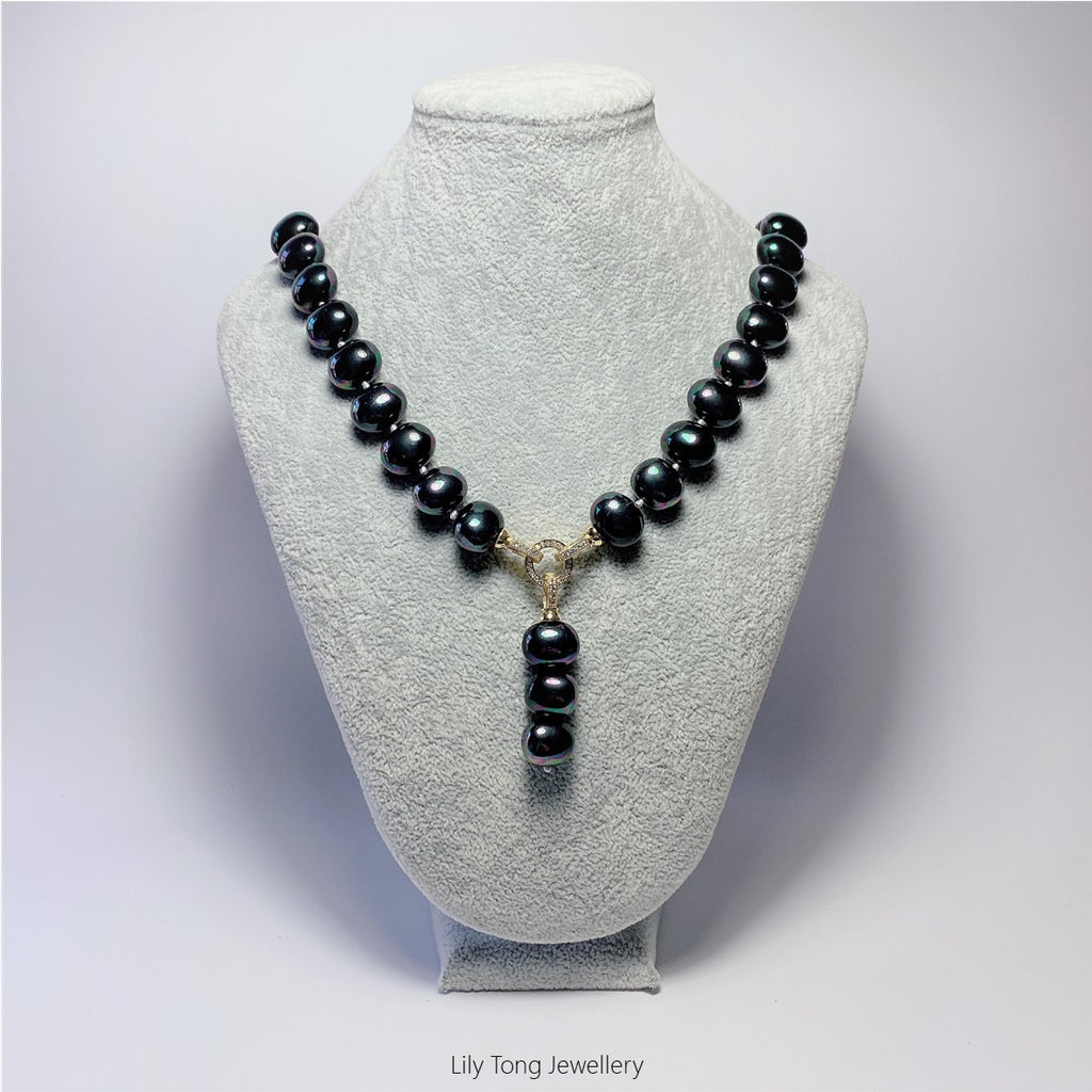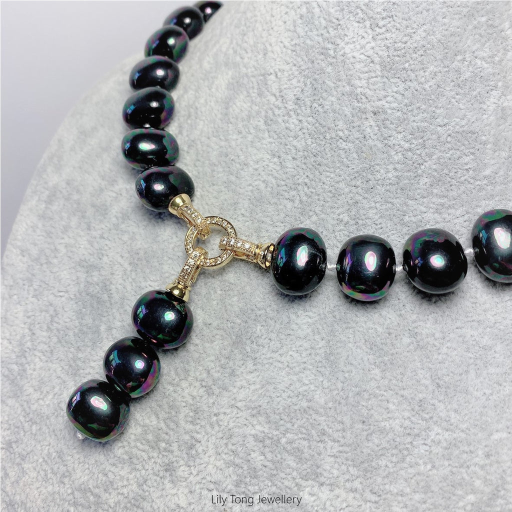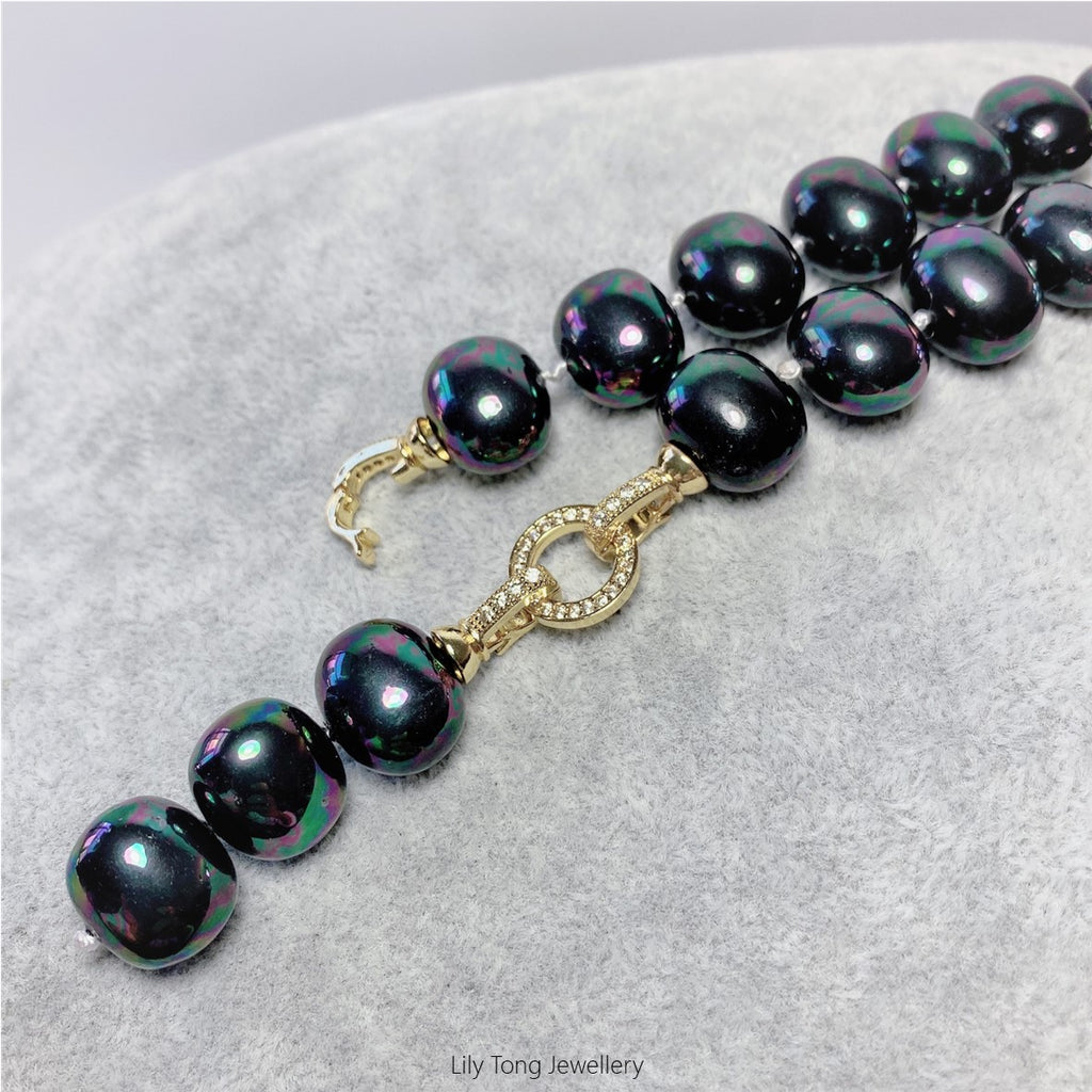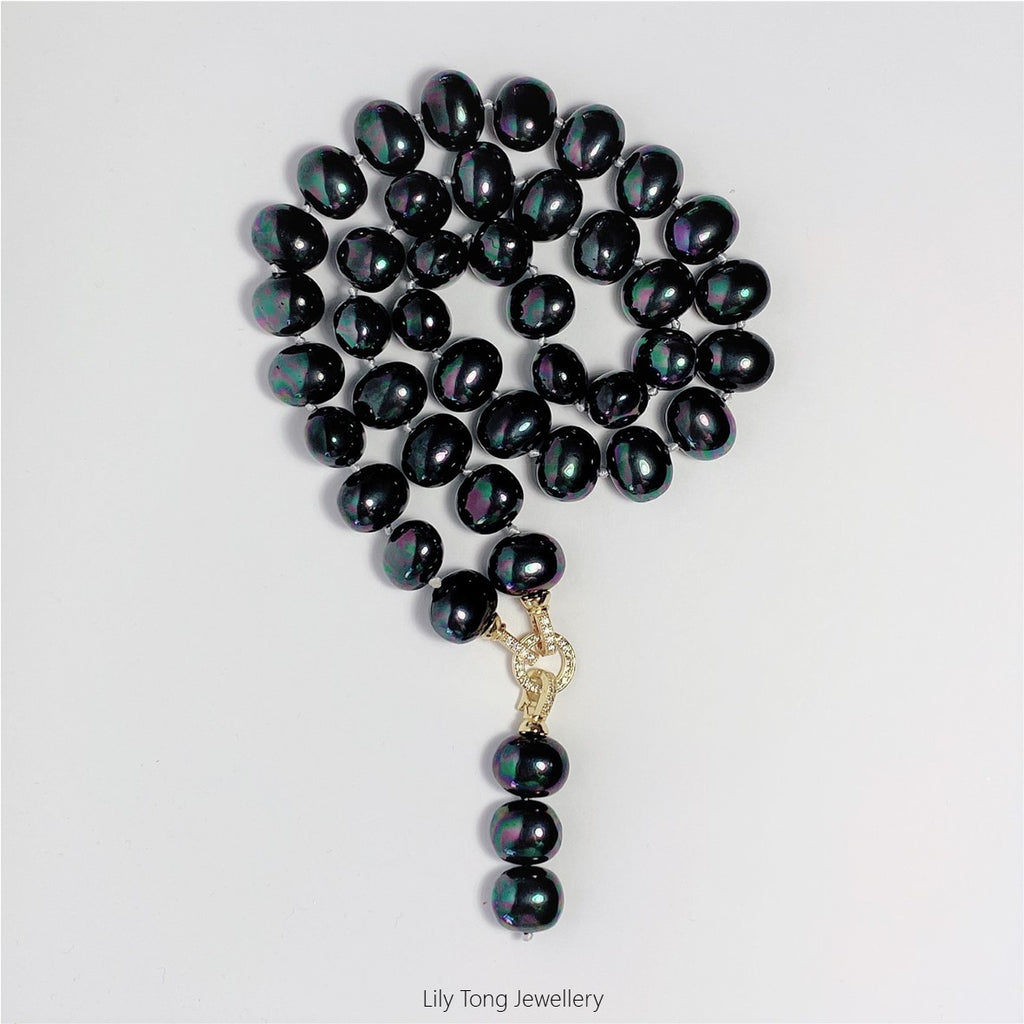 Peacock black oval shaped shell pearls