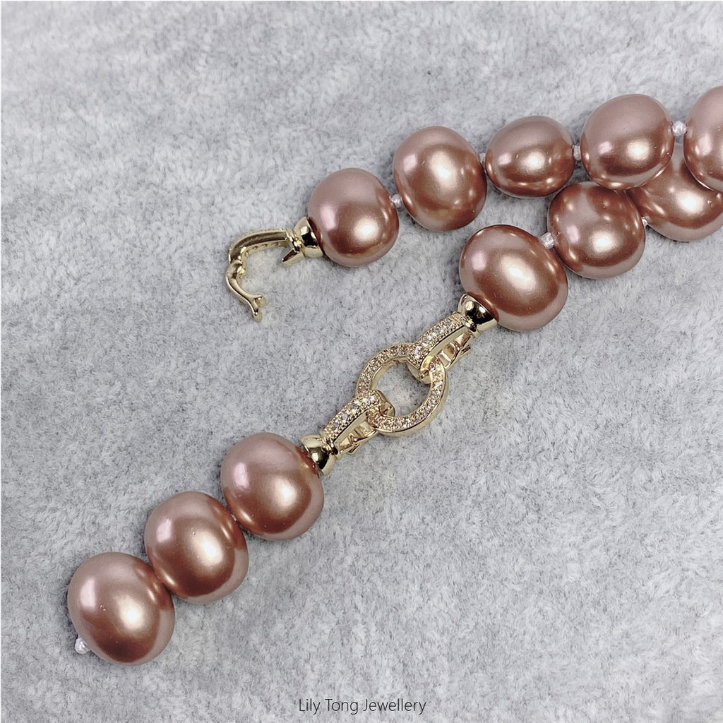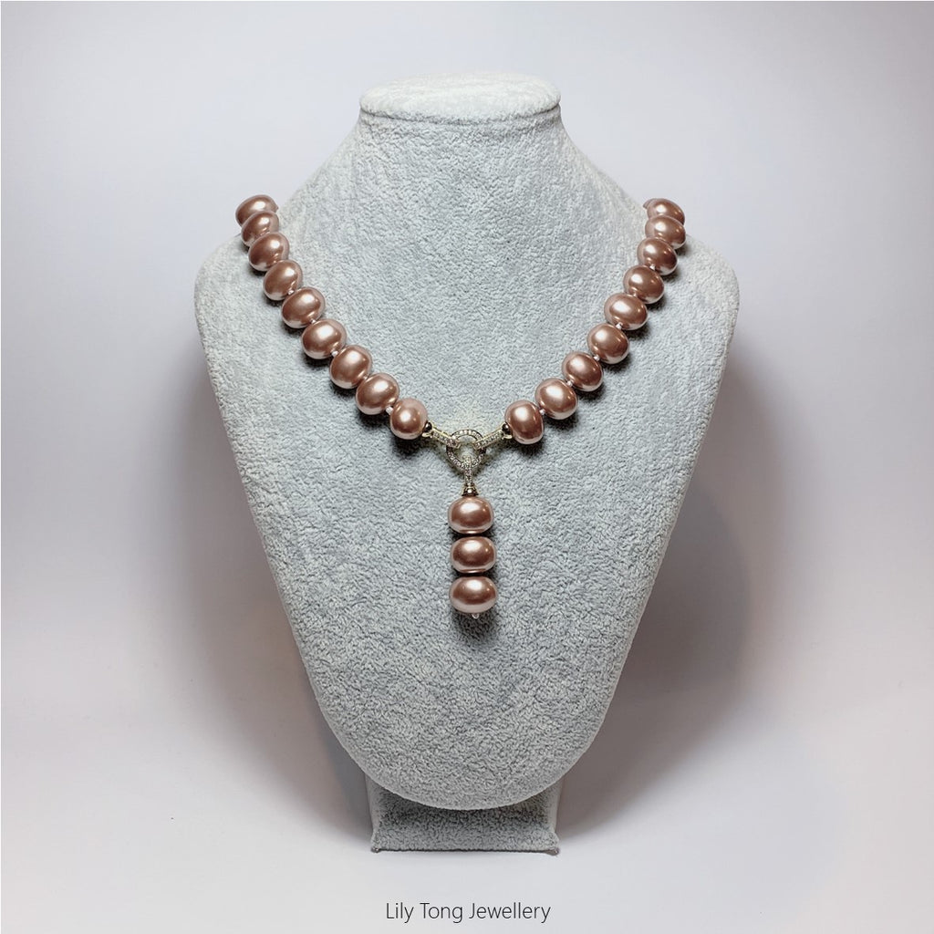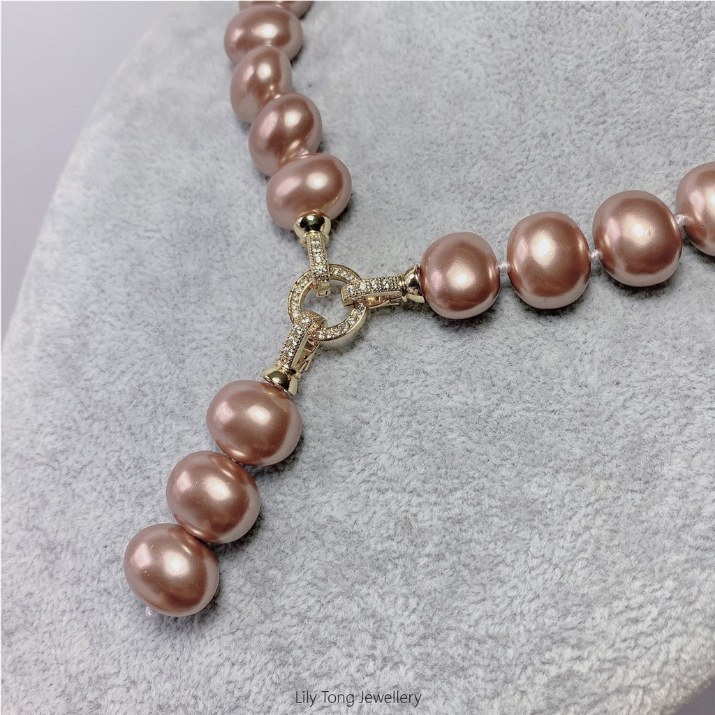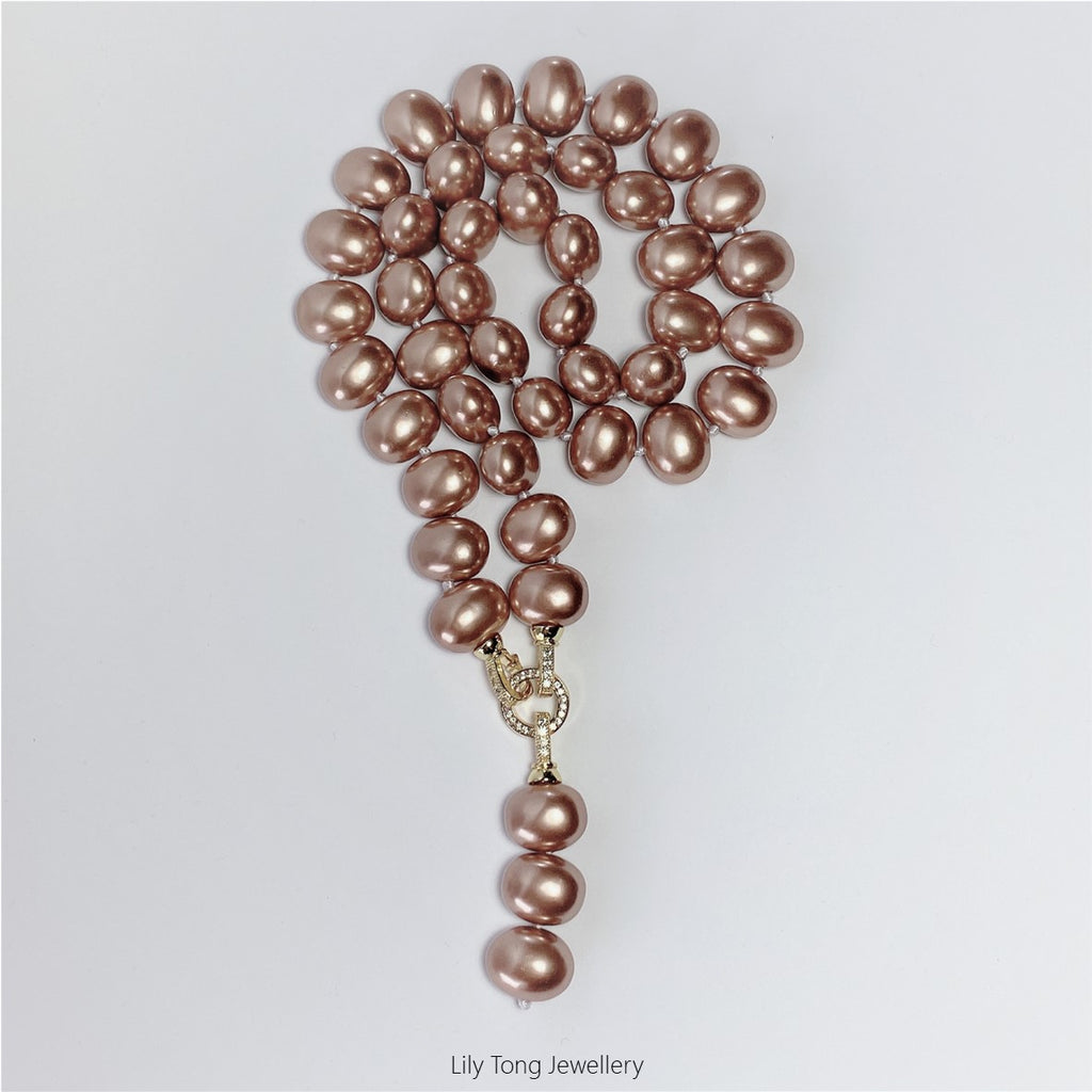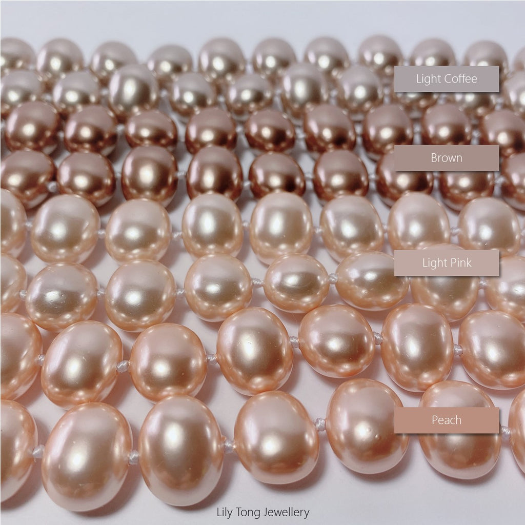 Oval Shell Pearl 3-Bead Pendant Necklace #0577